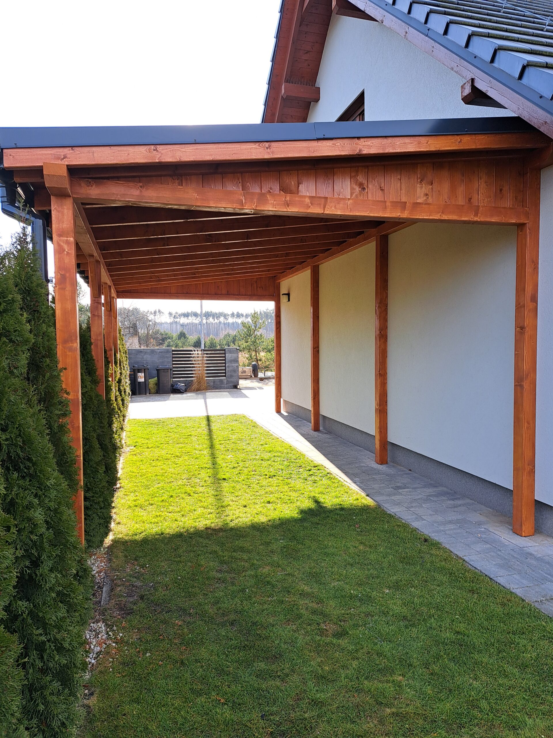 Funkcjonalne zadaszenia chronią tarasy, wejścia i miejsca wypoczynku przed deszczem i słońcem. Wykonane z wysokiej jakości drewna, łączą estetykę z trwałością. To praktyczne rozwiązanie, które zwiększa komfort użytkowania przestrzeni na świeżym powietrzu.